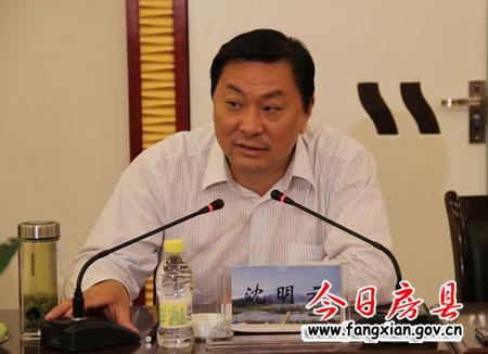 县委书记沈明云在向调研组作汇报