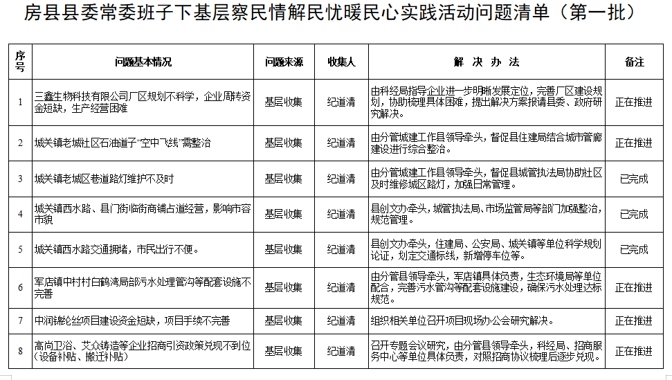 房县县委常委班子下基层察民情解民忧暖民心实践活动问题清单(第一批)-今日房县网-- 房县门户