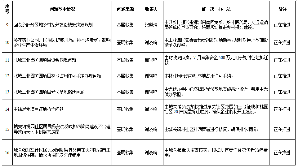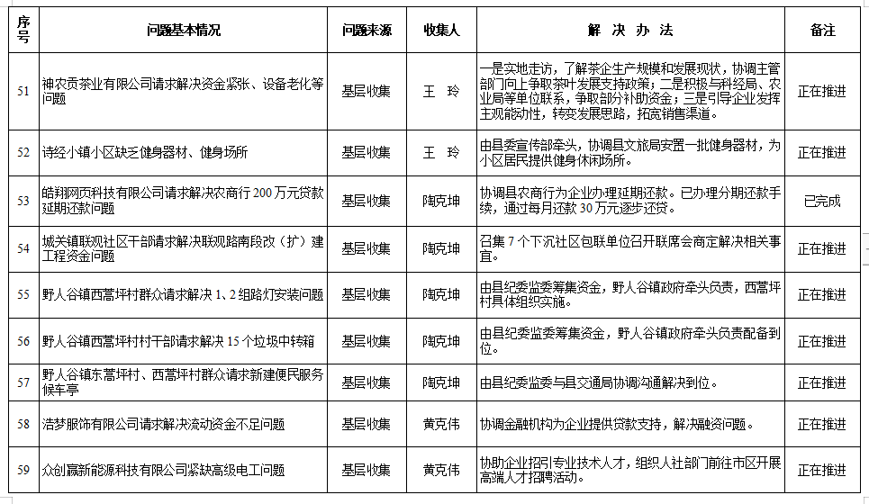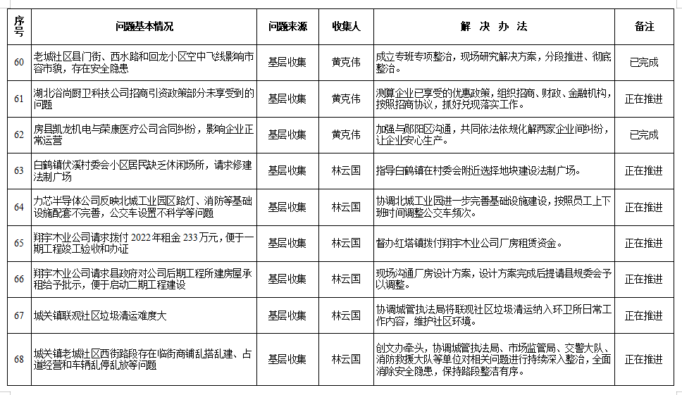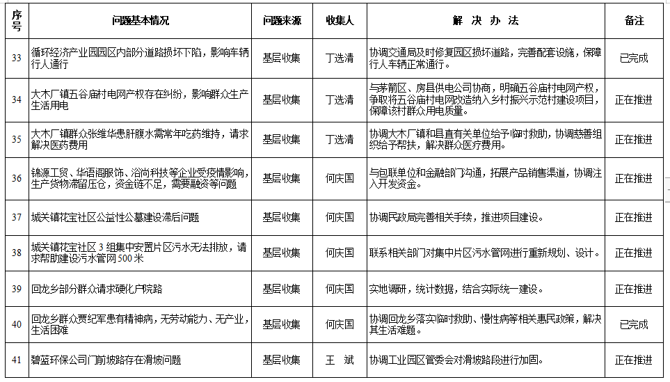房县县委常委班子下基层察民情解民忧暖民心实践活动问题清单(第一批)