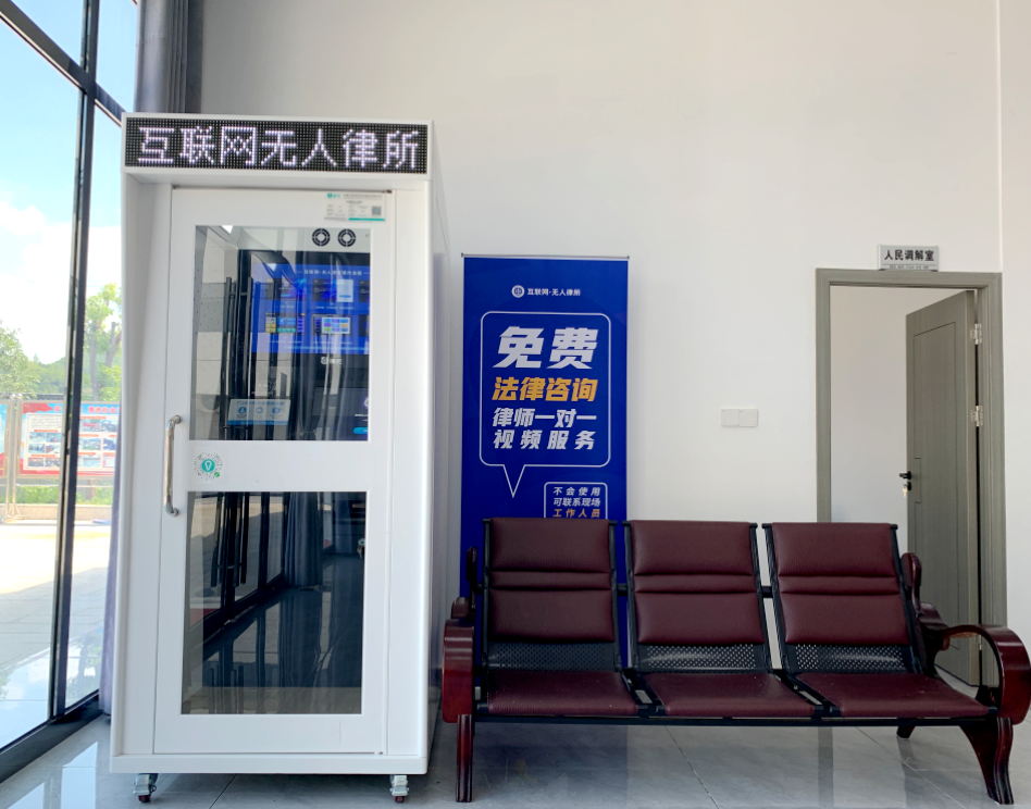 “互联网无人律所”利用人工智能、大数据和互联网优势,通过互联网连接全国3万名知名律师、全县知名律师事务所提供智能法律服务。居民可通过扫描身份证或微信扫码登录,在自助机上点击想要咨询的法律事项就可以得到半小时免费法律咨询远程视频服务。方便群众与律师进行面对面、一对一的咨询交流,为群众提供一站式互助法律服务,涵盖法律咨询、文书服务、诉讼调解服务、机构查询等服务。