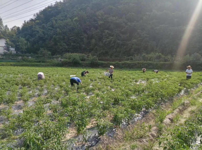 红绿相间的辣椒地里,村干部们帮助村民采摘辣椒忙碌的身影,构成了一幅辣椒丰收、党群情深的美丽画卷。村民党天根告诉记者:我套种在茶园地里有6亩,第一次采摘500斤左右,照这个行情和长势,辣椒产业年收入2万元是没有问题了。在收购摊点,工作人员正娴熟地对辣椒进行分拣、装箱、称重、搬运上车。