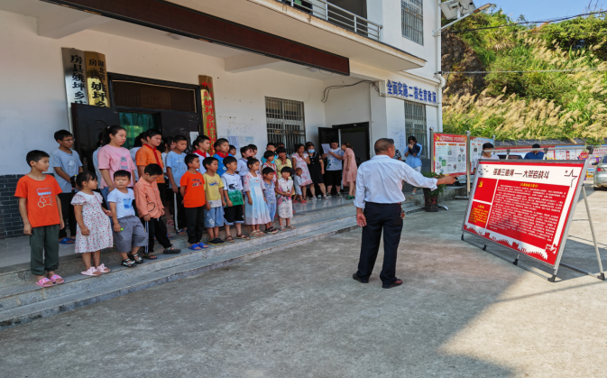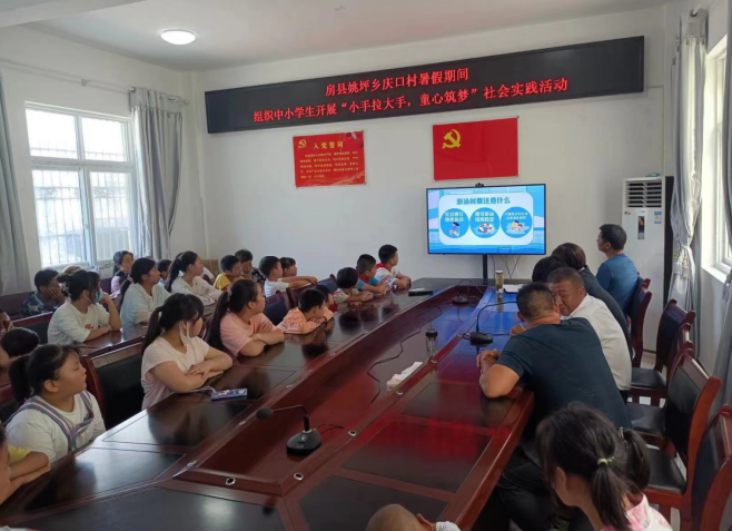 今日房县网讯 通讯员 董昌明 钞美美 报道:“各位同学,发生在我们堵河的大架岩战斗牺牲了300英雄才换来了我们今天的幸福安宁的生活,我们都应该珍惜生命,用奋斗书写人生!说到这里哪位同学能给我背诵一下预防溺水“六不”准则?”“不私自下河游泳、不擅自与他人结伴游泳、不熟悉水性的同学不擅自下河施救……”在场部分同学异口同声说到。这是姚坪乡庆口村召集在家学生在村委会开展的一次暑假安全教育课场景,庆口村党支部书记肖本清正在通过“防溺水”宣传视频和堵河姚坪段1931年红军强渡三道绳-大架岩战斗红色故事有机结合,结合自己多年前参与溺水事件救援经历,教育在家28名学生珍惜生命、预防溺水,倡导学生遵纪守法、刻苦学习,做红色精神的传播者、守护者和传承者,为家乡平安稳定贡献一份力量。