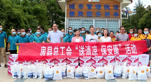 今日房县网讯 记者 何赛男 报道:7月27日,副县长邹莉慰问公交车司机、快递员等户外一线工作人员,为他们送去“阵阵清凉”,并通过他们向全县广大劳动者表示慰问和感谢。