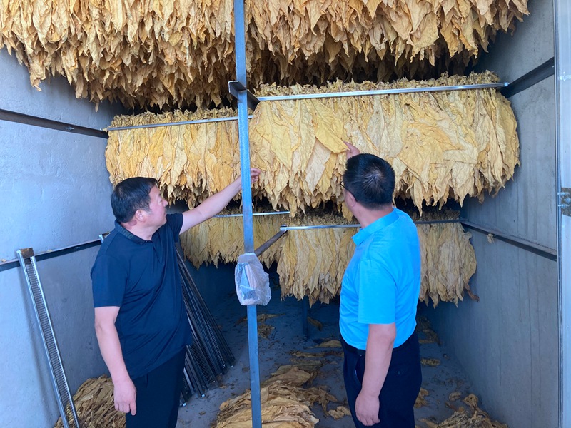 及时调整烘烤技术方案。一是做好旱黄烟的烘烤指导。针对“当前持续高温干旱,下部烟多为旱黄烟,且水分含量少”的情况,指导烟农及时采收下部烟,同时在烘烤变黄阶段采取保湿变黄措施,提升烘烤质量。二是以烘烤曲线图为抓手落实烘烤技术。设置不同部位烘烤工艺曲线图,并下发至每一位烟站技术员,通过合理控制烤烟升温速度、稳温时间,确保烟叶烘烤质量。