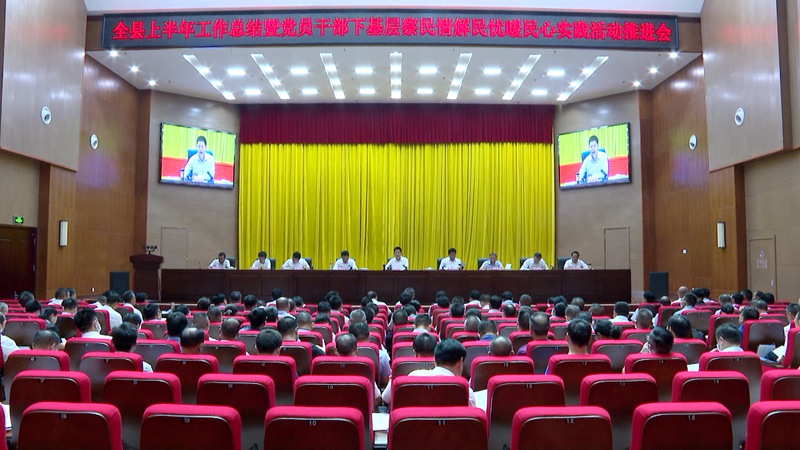 会议通报全县上半年经济运行情况、全县上半年绩效考评情况、全县党员干部下基层察民情解民忧暖民心实践活动情况。