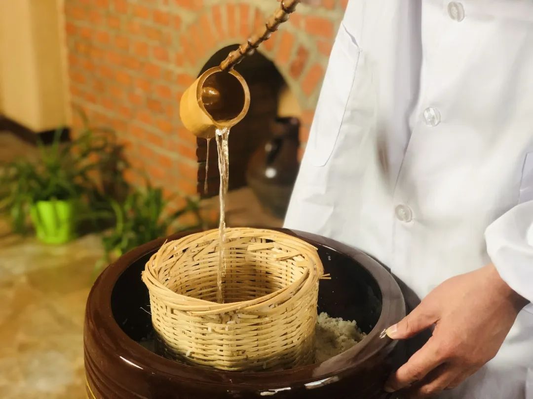 酒香,源于曲香。清香的蓼子,甘甜的茅草根,捣成黄酒小曲,据说这种酒曲是神农氏发明的。然后,和进雪糯或玉米,用地下深层的矿泉井水,蒸熟,冷却,发酵……这样酿成的黄酒,味道醇厚绵长,甘而不腻,应是贵族雅士的杯中尤物,你不妨选择它,它能为你驱散“高处的寒”,让你有一种尊贵的尘世温暖。