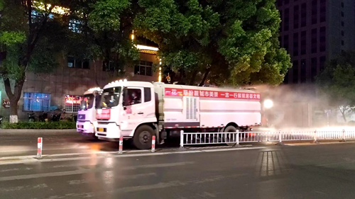 环卫保洁消杀,防疫标准升级。面对疫情起伏,环境卫生管理所卫生标准再升级。出动130余名环卫职工、40余台环卫车辆,加强环卫设施常态化消杀工作,增加城区生活垃圾容器清运频次,坚持每天对2个生活垃圾转运站、11座公共厕所等环卫设施消毒不少于2次,13日夜间开展环境卫生防疫消杀演练,出动雾炮车、机扫车6台,对城区街面、墙面、绿化带、人行道、城市外立面全方位喷洒消毒药水,全面洁净居民生活环境。