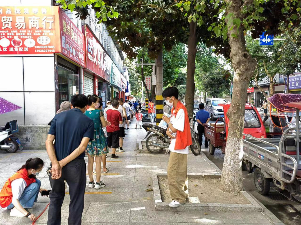 8月16日下午5点,在时代花园核酸监测点,该局信息员正有条不紊为每一位群众录入信息,汗水早已浸湿了衣衫口罩和手套,防护服下犹如“蒸***”。“请大家戴好口罩,保持一米线,提前打开健康码”,志愿者一遍又一遍、不厌其烦地提醒前来进行核酸检测的居民。