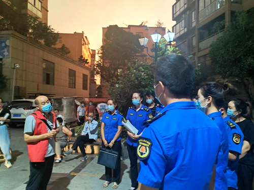 见令速动有担当。接到开展全县第六轮核酸检测通知后,执法局党组第一时间召开部署会,成立执法局疫情防控应急领导小组,局党组书记、局长全权率领局班子成员负责五个防控小组在做好全局防疫工作的同时,对包联小区、辖区市场、重点街道进行管控,做好诗源华府小区24小时值班值守工作,严格落实市场进出口“两扫一核”措施,40余台宣传车辆全部出动,在城区进行防控措施巡回宣传,对公共区域的聚集人员进行疏散,扩大社会面影响。同时环卫所开展第二次全域环境消杀,为打赢疫情防控攻坚战奠定坚实的环境基础。