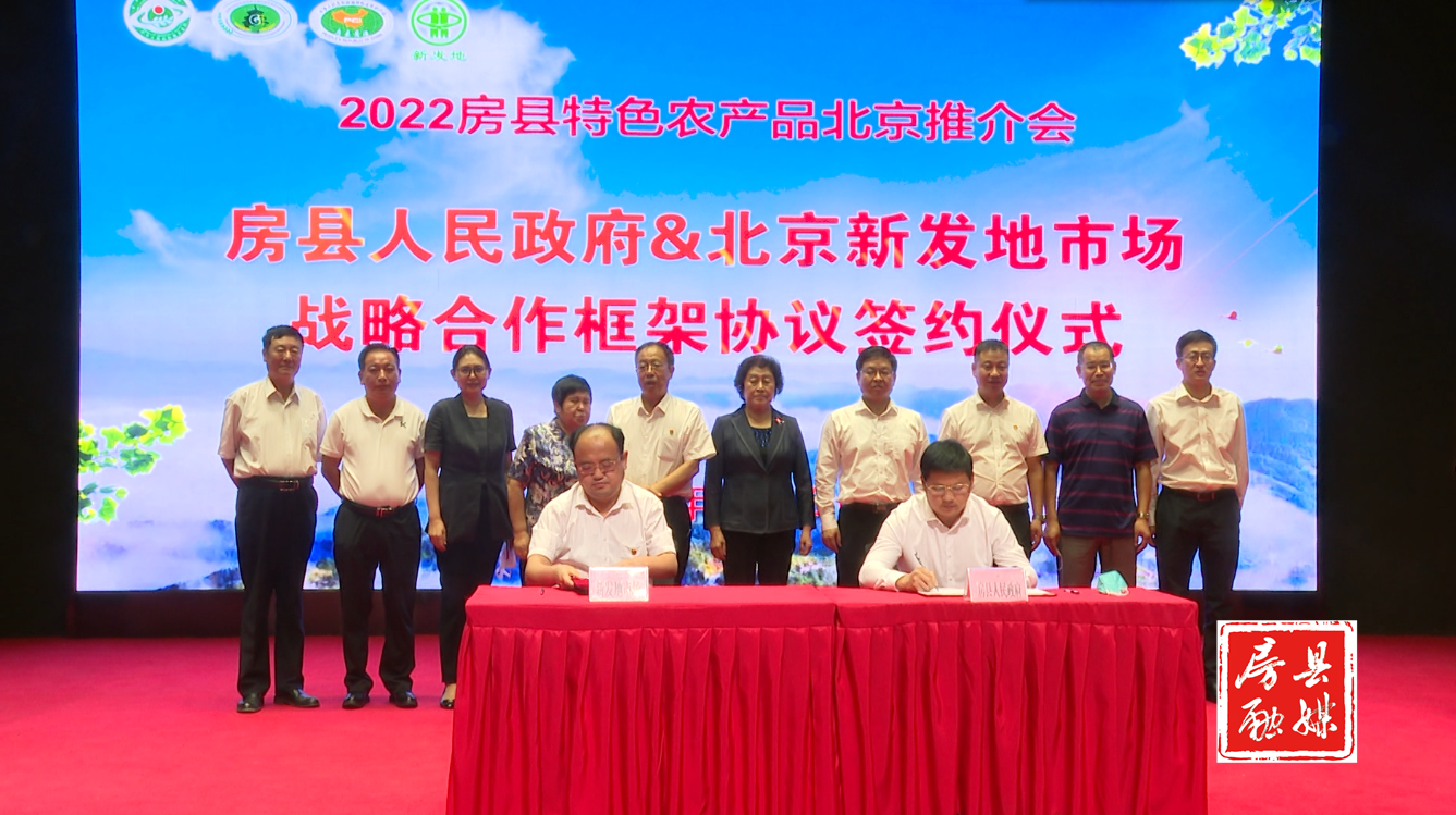 活动现场,房县人民政府与新发地农产品批发市场签订《房县特色农产品战略合作框架协议》;四家企业代表与新发地相关企业签订供销协议。