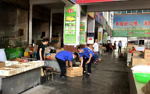 按照“创文”工作的要求,市场中心集中全部力量,深入抓好农贸市场环境卫生,切实做到商品划行归市、摆放整齐;坚决取缔占道经营、超摊经营、无证照经营等行为,对商户车辆乱停乱放、杂物堆积等现象进行整治,实现“摊位标准管理统一、卫生标准统一、车辆管理标准统一。对场内公共区域卫生、下水道、死角垃圾进行清理、冲洗及消杀作业,为群众营造干净、放心的购物环境。
