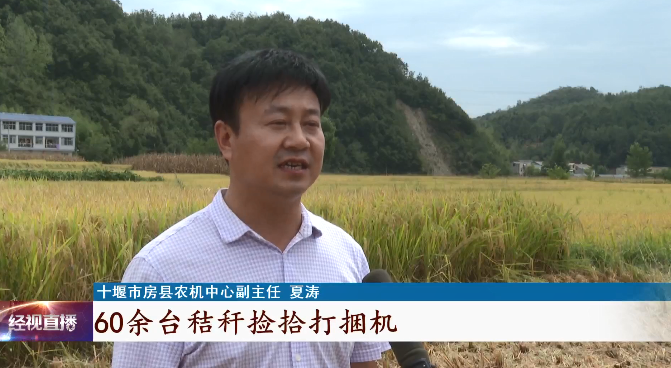 房县农机中心副主任 夏涛:房县抢抓有利天气,组织400余台收割机,60余台秸秆捡拾打捆机,力争用15天时间完成秋收,并且把秸秆全部回收利用,提高农民收入。