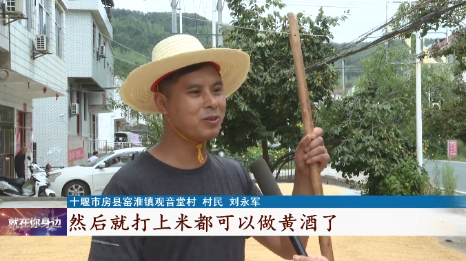 房县窑淮镇观音堂村 村民 刘永军:你看我们几乎每家门前都晒的是谷子,大部分都是糯稻,再过几天干了以后,然后就打上米都可以做黄酒了。