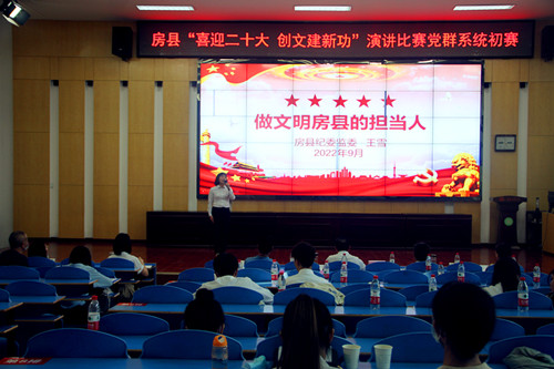 房县新闻网讯 通讯员 李英 尹娇 白存萍 报道:9月15日,房县党群系统“喜迎二十大·创文建新功”主题演讲比赛在东城小学举行。