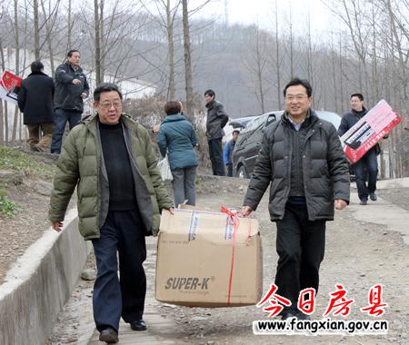 今日房县网讯 实习生 刘臣 报道: 2日,省发改委纪检组长黄光耀率领有关处室负责人深入驻点村——军店镇月明村走访慰问了困难群众,到月明小学走访慰问了该校的留守儿童,并为该校捐赠了电脑、足球、电子琴等一大批教学用品。据了解,省发改委组织机关干部下乡走访活动,旨在及时了解新农村建设中出现的实际问题。