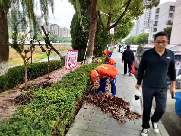 通过环卫工人的辛勤劳动,有效提升了市容环境面貌,同时也为树木长势创造了一个良好生存的条件。