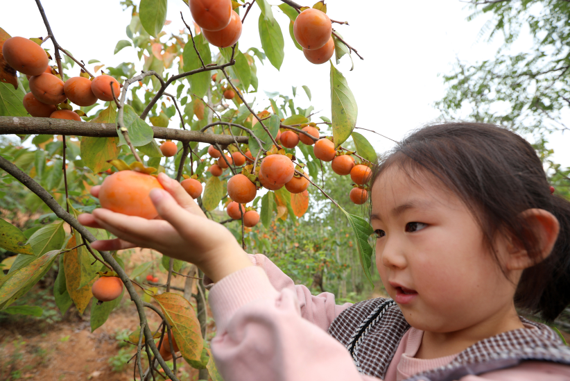 今日房县网讯 通讯员 张启龙 报道:2022年9月24日,房县回龙乡古桥沟小流域火红的柿子挂满枝头,当地小朋友在自家屋后的梯平地采摘小柿子。近年来,房县综合治理小流域水土流失,将山坡地改建成梯平地,植栽柿子、樱桃、核桃等水土保持果树,实现水保经果林固土保水,改善农村生态环境,增加农民收入。目前,小柿子成就了大产业、农民增收致富的“黄金果”,全县小流域经果林面积达到60多万亩,年均实现优质干鲜果收入达11亿元。