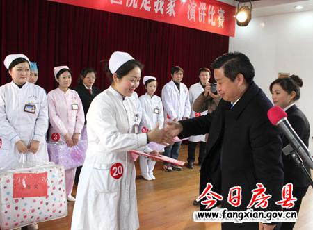 比赛现场,姚峰对工作在医疗战线的女同胞们送上了祝福,并指出,作为医务工作者要发扬“自尊、自信、自立、自强”的精神,全心全意地为患者服务,抓好新一轮的医疗改革工作,为我县的医疗卫生事业做出更多的贡献。