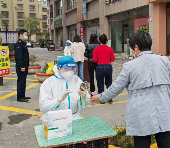 11月3日一早,记者分别来到下西关社区和老城社区看到,下沉单位城管执法局和农业机械服务中心党员干部正有序组织开展核酸检测工作。
