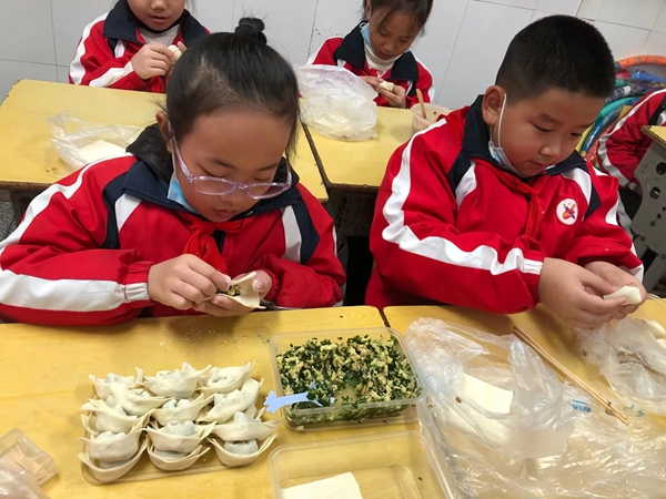 11月16日下午,在房县实验小学的教室里,三年级的学生们在劳动课老师的带领下化身“小厨师”。他们分工协作,有的擀饺子皮,有的切菜馅,有的包饺子,一个个忙得不亦乐乎。四年级的学生们则三五成群地把老师提供的水果,摆成自己认为最美的拼盘。学生们纷纷一表示:“我们体验到了爸爸妈妈做饭的辛苦,以后一定会不挑食!”