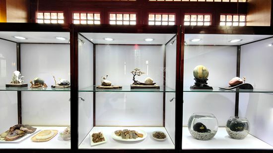 房县庐陵王酒庄奇石书法艺术中心收藏的主要有釉光青、阿拉善奇石、汉江卷纹石、汉江红石、新疆玛瑙、神农架夹心玛瑙等多个品种。