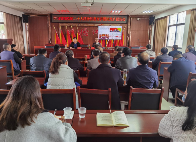 今日房县网讯 通讯员 刘韩 钟闻溪 报道:11月22日,回龙乡组织召开学习贯彻党的二十大精神县委宣讲团回龙报告会,县委党校常务副校长、宣讲团讲师赵礼江应邀作专题宣讲报告。乡党委副书记、乡长李伟主持会议,乡机关全体领导干部、乡直各单位负责人、村“两委”干部、驻村工作队全体成员共计70余人参会。