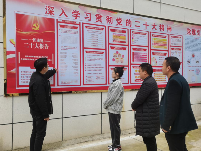 二是深入宣传,让党的二十大精神在基层落地生根。为营造浓厚的学习传达氛围,回龙乡组宣办持续利用微信群、QQ群实时转发推送党的二十大会议有关内容、重要报道、重要文章、精神解读;成立宣传队伍,驻村领导干部、工作队和村“两委”干部和部分老党员作为宣传员,借助党支部主题党日活动、共同缔造户院会、下察解暖活动、脱贫攻坚后评估筹备、新时代文明实践理论宣讲等时机宣讲党的二十大精神;广泛利用电子显示屏、村村响、宣传展板等方式宣传党的二十大精神,不断深化党员干部和基层群众对党的二十大精神丰富内涵、核心要义、时实践要求的深入理解,引导群众听党话、感党恩、跟党走。