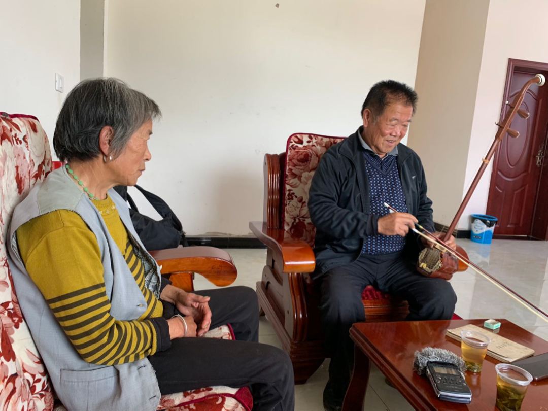 邓发鼎:我们在艰苦、日子不好过的时候,我们这地方上好多人他们都说,他搞这,搞这些,都没得啥吃的了,他们两口子还坐屋里,拉的拉、唱的唱,我们就是这样度过。(通过唱歌)提高自己的精神,提高了自己的心理(承受能力),改善一些难题,克服了困难。
