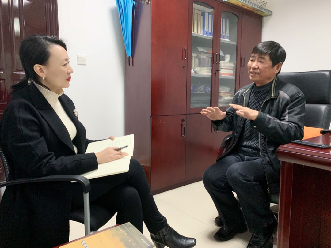 ▲湖北省民间文艺家协会原主席傅广典(右)接受湖北之声记者采访