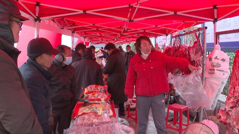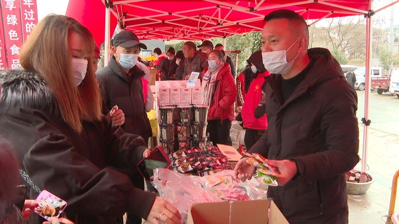 活动当天,来自青峰街村、龙王坪村、峪坪河村等地的农户们早早地就赶来,把牛羊肉、土猪、土鸡、香菇、木耳、黄酒、羊肚菌、豆油筋、蜂蜜等绿色农副产品摆上了摊位,供游人选购。青峰啤酒、九方魔芋等企业的系列产品也在年货节上展销。