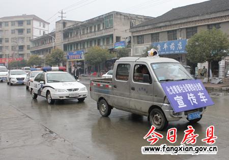 图为化龙堰镇社会管理综合治理宣传车车队