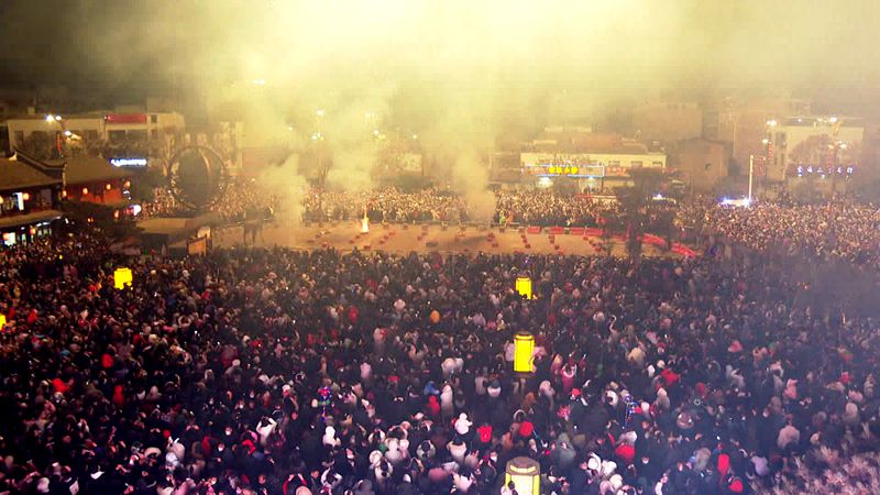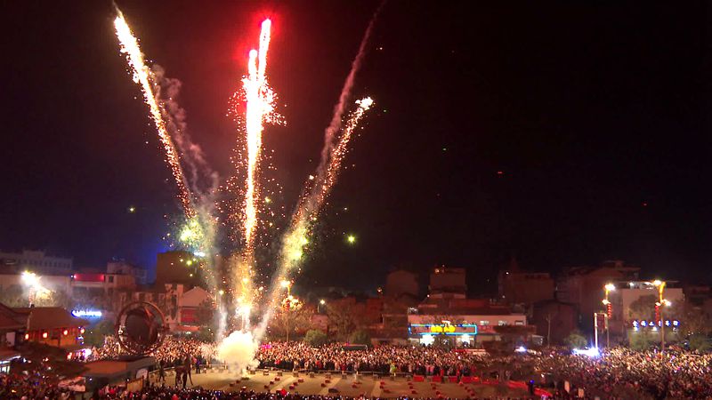 晚上8点,城区市民从四面八方奔涌而来。各种造型的烟花腾空而起,犹如一朵朵盛开的花朵,尽情绽放,如瀑布般散落,在黑夜中勾勒出一幅古色古香的盛世美景。烟花之下,一张张笑脸上写满着幸福、喜悦。大家纷纷举起手机、相机记录美丽时刻,在五彩斑斓的焰火中憧憬着美好生活。一朵朵绽放的烟花,点燃了城市烟火气,传递着新年的喜悦与幸福。