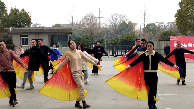2月1日,记者先后来到财政局和实验小学节目排练现场,看到演员们正在冒着凌冽冷风,认真彩排。演艺方队演员们身着彩色霞帔,清风轻摇玉袖,在一笑一颦、一动一静间徐徐铺开一幅山水壮美的绿色画卷。彩旗方队演员们动作整齐划一,干净有力,气势磅礴,一招一式尽展青春风采。