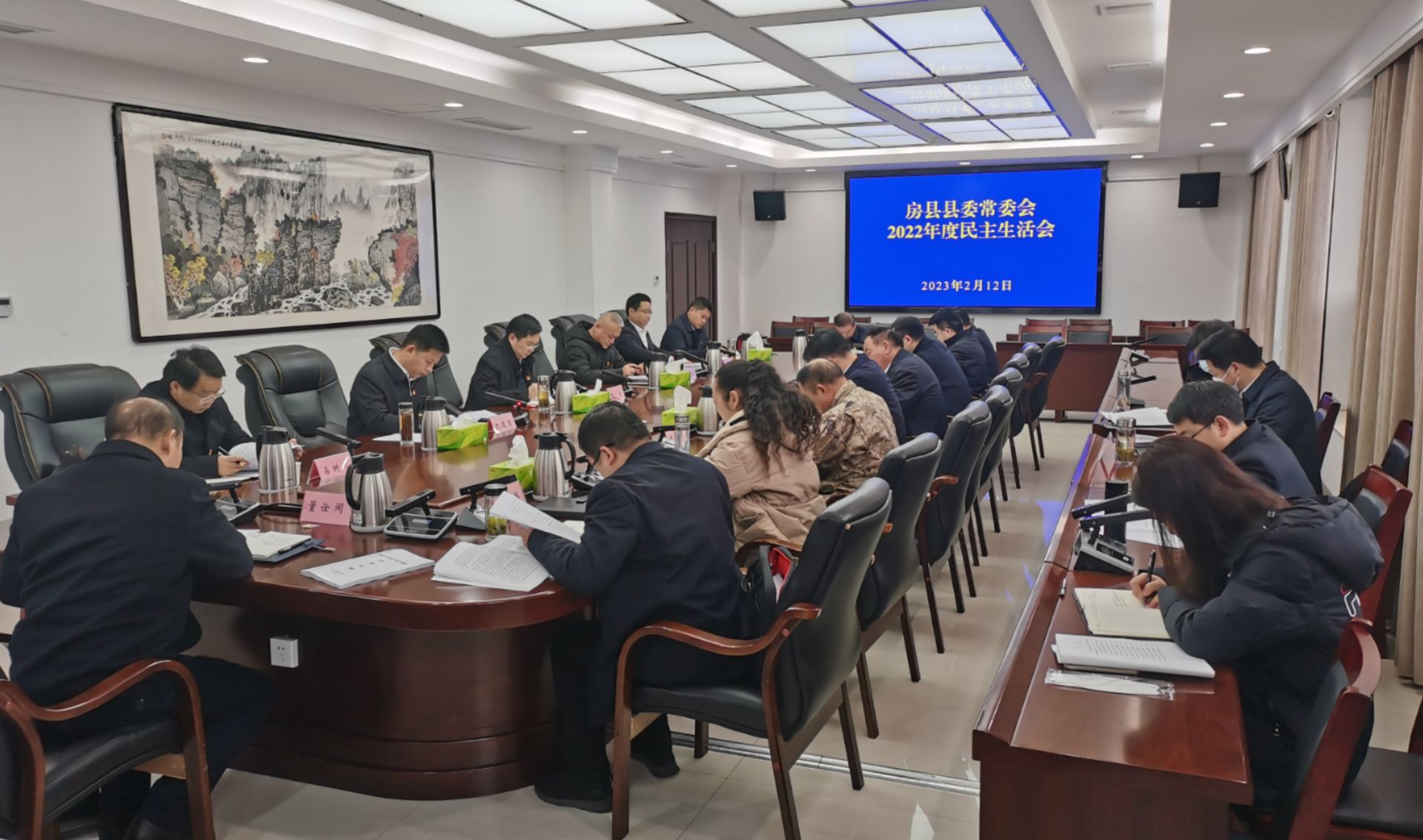 今日房县网讯 记者 李硕 报道:按照党中央部署和省委、市委要求,2月12日,房县县委常委会召开2022年度民主生活会。这次民主生活会以“全面贯彻习近平新时代中国特色社会主义思想,深入贯彻落实习近平总书记关于湖北工作的重要讲话和指示批示精神,深刻领悟‘两个确立’的决定性意义,增强‘四个意识’、坚定‘四个自信’、做到‘两个维护’,加快建设‘绿色低碳循环发展示范县’,奋力谱写中国式现代化房县篇章”为主题,紧密联系县委常委会工作,联系个人岗位和工作实际,深入查摆不足,分析思想根源,严肃认真开展批评和自我批评。