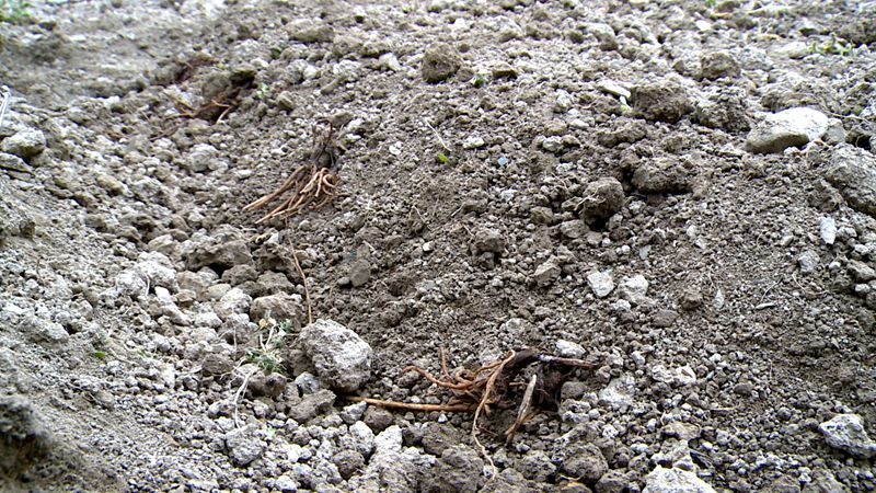 “这是苍术苗,种植要求是底朝下,头朝上,间距10厘米,然后再盖上土。”务工人员肖光林说道。