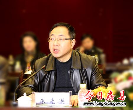图为县长朱光洪主持会议