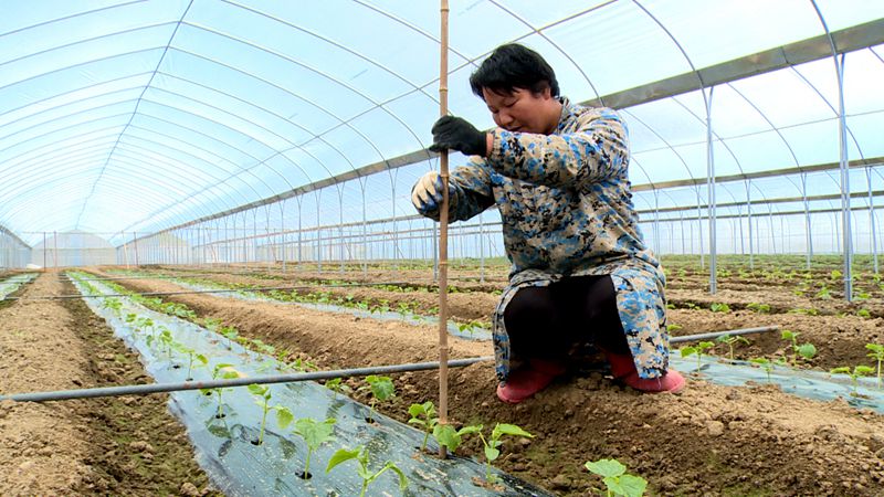 村民 王艳说:“我们到大棚做活,一个月2千多元,冬天做七个小时,夏天八个小时,在屋里钱也挣了,孩子也照顾了,感到很满足。