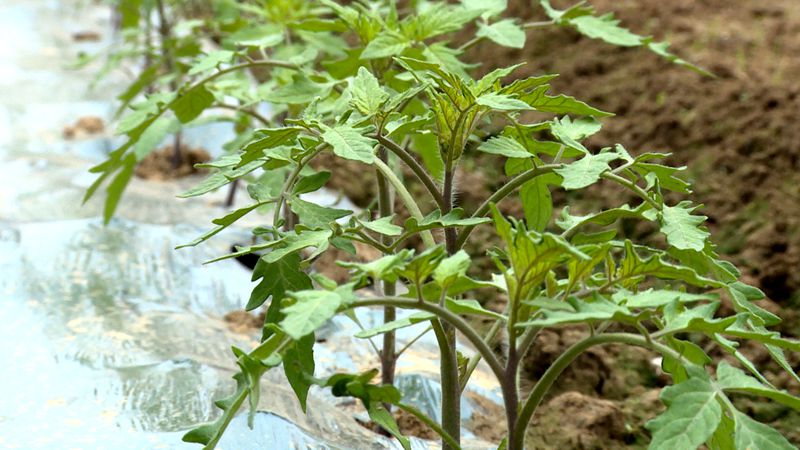 近日,记者在白鹤镇赤岩村蔬菜大棚现场看到,果蔬苗长势旺盛,绿意盎然。村民正准备吊绳或竹竿,保证果蔬秧苗顺杆爬,避免秧苗栽倒地里,长出残品果。