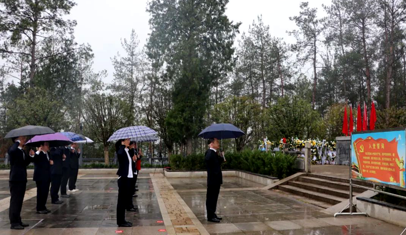 清明时节雨纷纷,烈士墓前悼英魂。 在革命烈士纪念碑前,全体党员干部佩戴党徽,列队肃立,向革命先烈默哀致敬,敬献鲜花,寄托无尽的哀思,表达崇高的敬意。