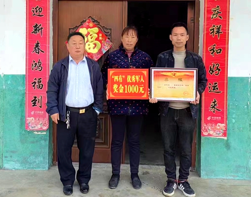 今日房县网讯 通讯员 姜建卫 刘庆波 报道:一人立功,全家光荣!4月6日,青峰镇武装部联合退役军人服务站为辖区内2名荣立“三等功”、6名获得“四有”优秀士兵家属送去立功受奖喜报和奖励金,让军人军属共享荣耀和喜悦。