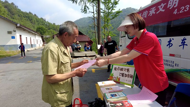 随后,房县新华书店向尹吉甫镇新时代文明实践所捐赠了价值2万元的图书,设置了流动书屋,居民足不出户就能够乐享“文化大餐”。现场还为获得2022年“十堰市最美阅读推广人”的人员颁奖,执法人员为大家讲解辨别正版书籍的方法。房县文旅局局长现场为大家讲授诗经文化,号召人人都是诗经文化的推介者,县文化馆演职人员带领大家共同演唱诗经民歌,以诗祖为荣,以诗书传唱,以诗歌怡情,擦亮诗经文化金字招牌。