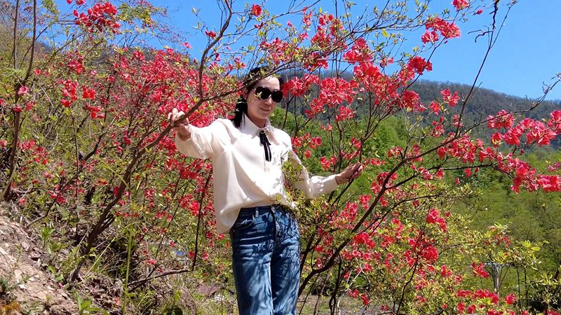 旅客 芦正菊 说:“我们来到千家坪来看杜鹃花,这里花很美,农副产品很丰富,欢迎大家来品尝,欢迎大家五一假期都来观赏。”
