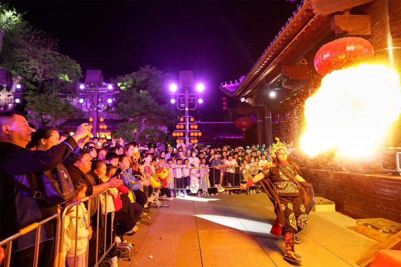 黄昏日落时,微风徐徐,汉服游园进行时。古色古香的小巷之中,广袖飘飘,流光溢彩之间,为游客们呈现一场仙气飘飘的视觉盛宴。游园结束,快乐不结束。主题晚会嗨翻全场,让游客感受到古代和现代碰撞出的别样文化魅力。