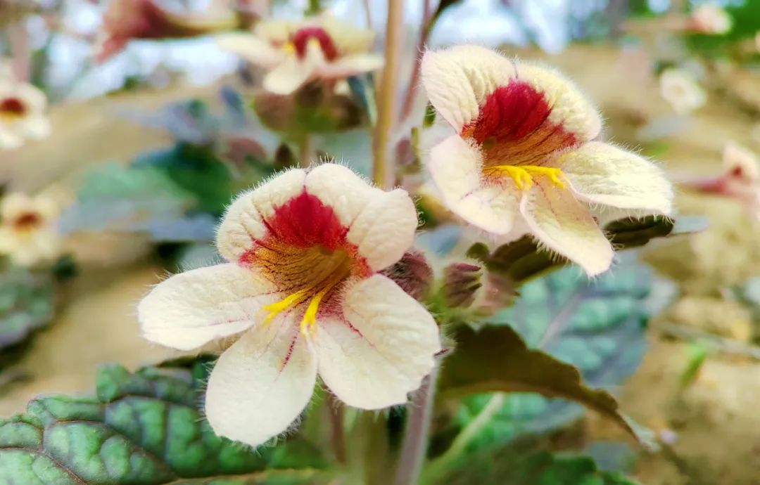 我们三个一群,五个一伙,在村子里转悠。这里的园林布局错落有致,植被、草坪、石头、花草、小径互相独立又相互呼应,少了哪一样好像都不够完美。整洁干净的民宿小院统一规划,背山面水,每座小院四周都有一棵大树,用石头砌成矮矮的院墙,栅栏为门,我突然有种“柴门闻犬吠,风雪夜归人”的温暖之感。在这里可坐对一山青,冥思苦想,进入忘我境界;亦能涉水而行,挥竿垂钓,享受闲适之趣。我们在这里流连忘返,踟蹰不前。却忘了樱花岛正热切地盼着我们。这是一座河边小岛,2018年借招商引资的东风,樱花岛现任“岛主”彭杰斥巨资建成。岛上亭台楼榭,花树成荫,自建成以来,已成为姚坪乃至房县的一张旅游名片,吸引了周围县市不少游客。岛上以早樱为主,山东晚樱为辅,依山而建的酒店,方便游客吃住玩乐。上岛的路是一条鹅卵石铺就的樱花大道。两边皆是樱树,两树之间种植了大量产自日本的草本芝樱,像两条花带一直蜿蜒向前。早樱已经凋谢,晚樱和芝樱正当花期。我被盛开的芝樱吸引。那艳丽的玫红,一朵两朵单薄又单调,可是成片的盛开就灿烂明媚地夺人眼球,撼人心魄,让人沉醉。起风了,樱树上挂着的风铃发出脆脆的乐声,风里携着淡淡的花香和草木抽芽的味道。路旁的坡地上种植有白色的牡丹,单瓣黄蕊,纯洁妩媚。在一处坡地我看见了一种名叫地黄的植物,喇叭状对生的花朵毛茸茸的,紫色的茎,叶子像龟壳一样,凸起的部分是蓝绿,凹陷的地方呈蓝紫。地黄的块茎可以入药,有清热生津、凉血止血之功效。我像发现了新大陆一样兴奋,选了很多角度将它留在我的相册里,也留在我的记忆里去。
