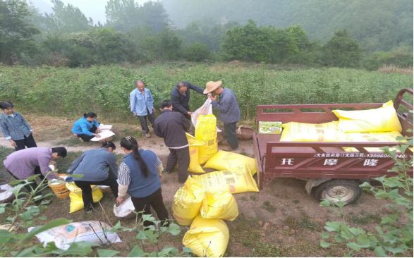 图为农户们正在进行施肥