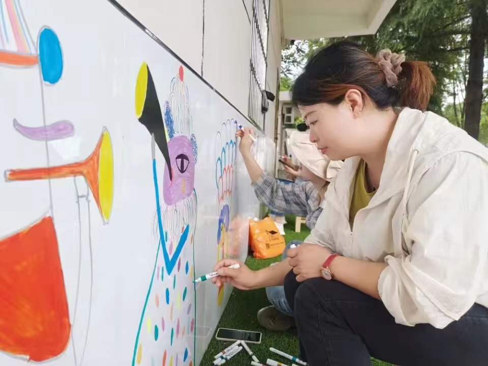 城关镇中心幼儿园园委会成员提前深入八里幼儿园对建筑布局、课程基础等进行了解,与帮扶园所园长和教师深入交流,明确其教育理念,以此为基础研讨确定了环创方案。