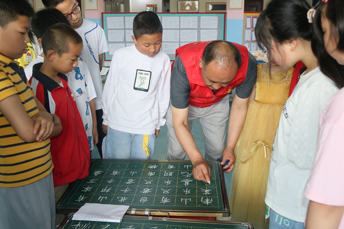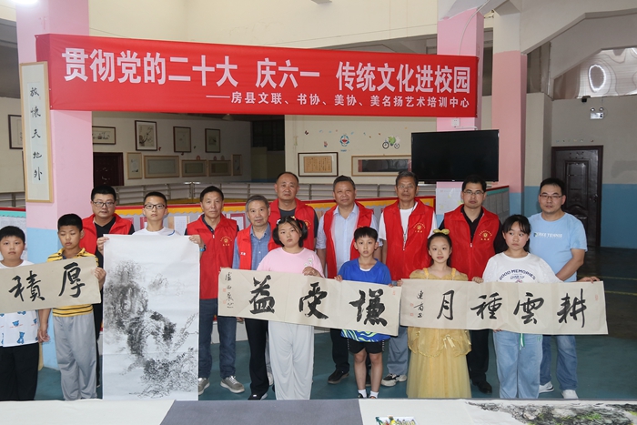今日房县网讯 通讯员 张立林 报道:弘扬优秀传统文化,搭建少年精神家园。在第73个六一儿童节之际,房县文联组织新时代文明实践文化文艺队书协、美协小分队赴美名扬教育培训学校开展“贯彻党的二十大 欢庆‘六一’儿童节”传统文化进校园活动。