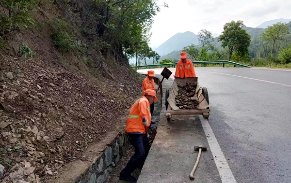加强日常病害养护管理。趁着夏季晴好天气,积极开展公路小修保养工作,成立专班人员及时修补路面坑槽、裂缝病害、填补路基缺口等病害,阻止路面发生更严重损害,降低车辆同行安全隐患。