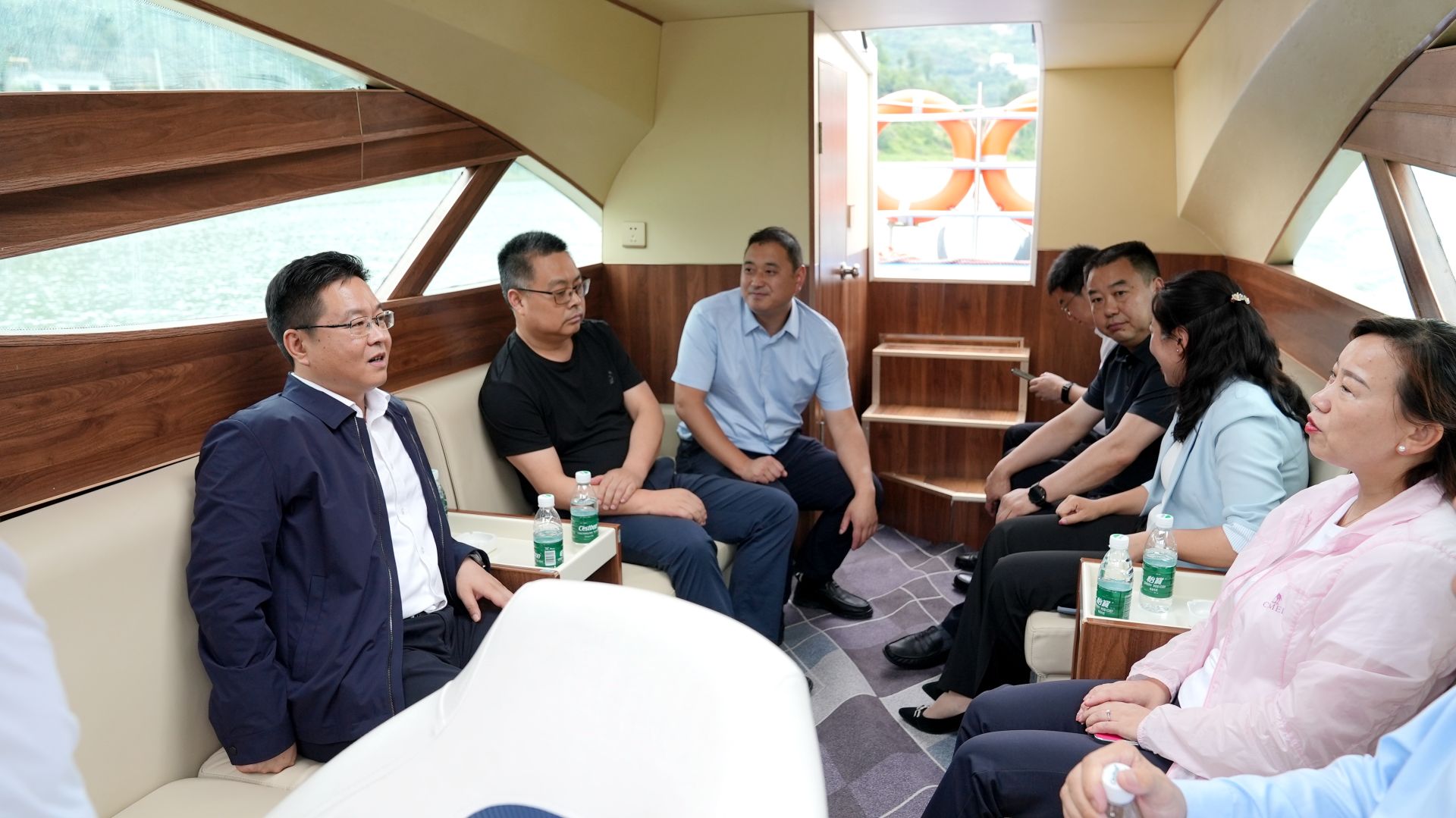 谢晓鸣一行乘船沿堵河流域巡河