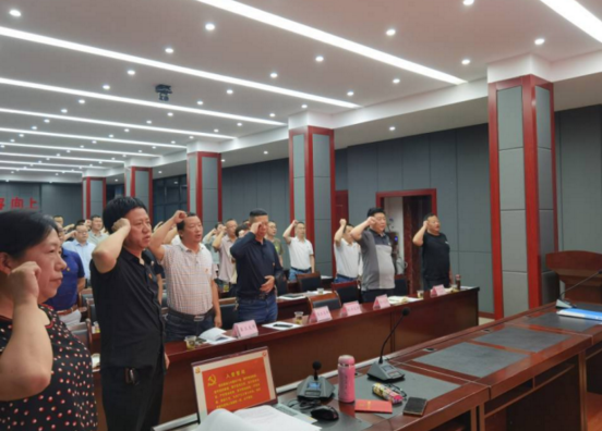 解读尾声,全体党员起立,高举右手庄严宣誓,重温自己对党的忠诚誓言,汲取奋进力量。